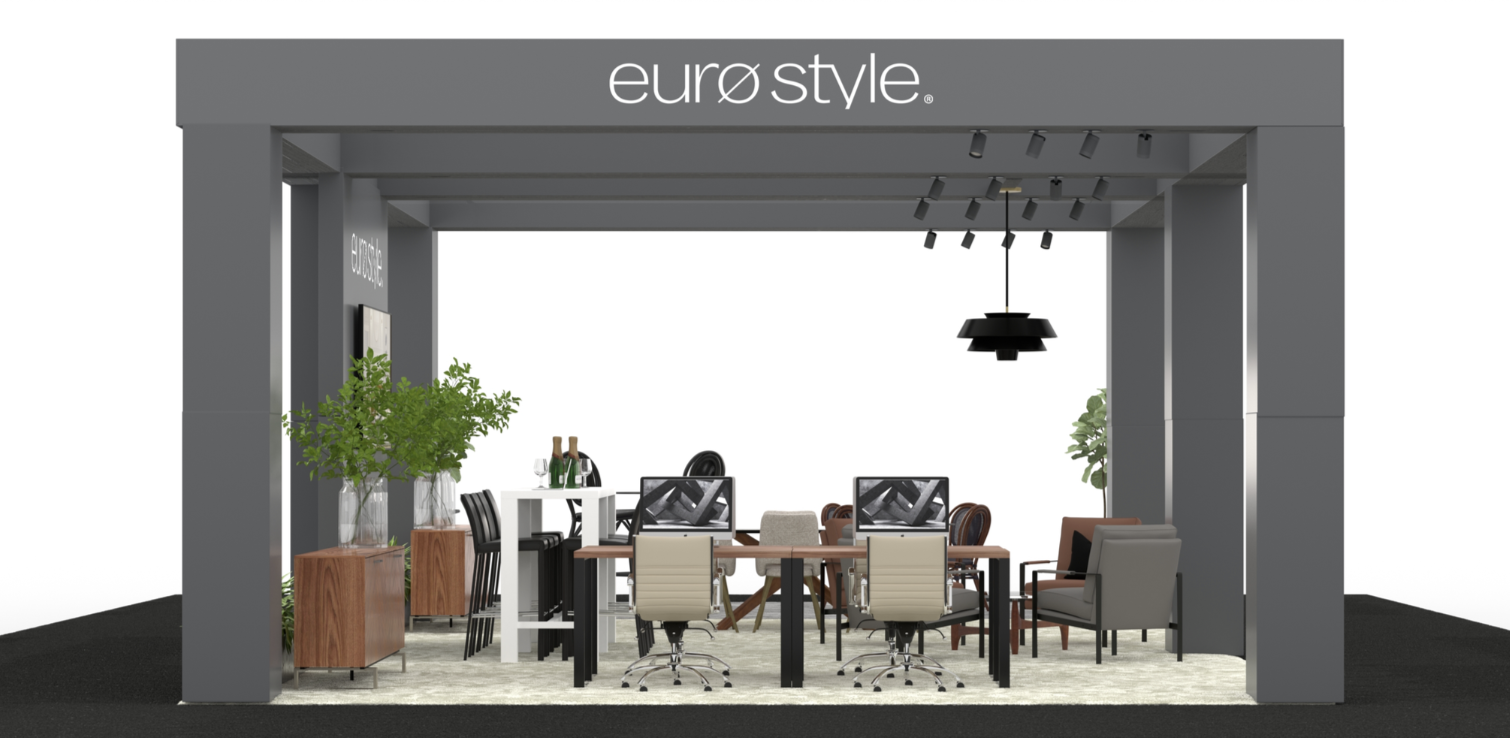 In a crowded field of established contract brands, Euro Style needed a booth that conveyed premium quality, category breadth, and in-stock reliability while feeling elevated and inviting rather than transactional.