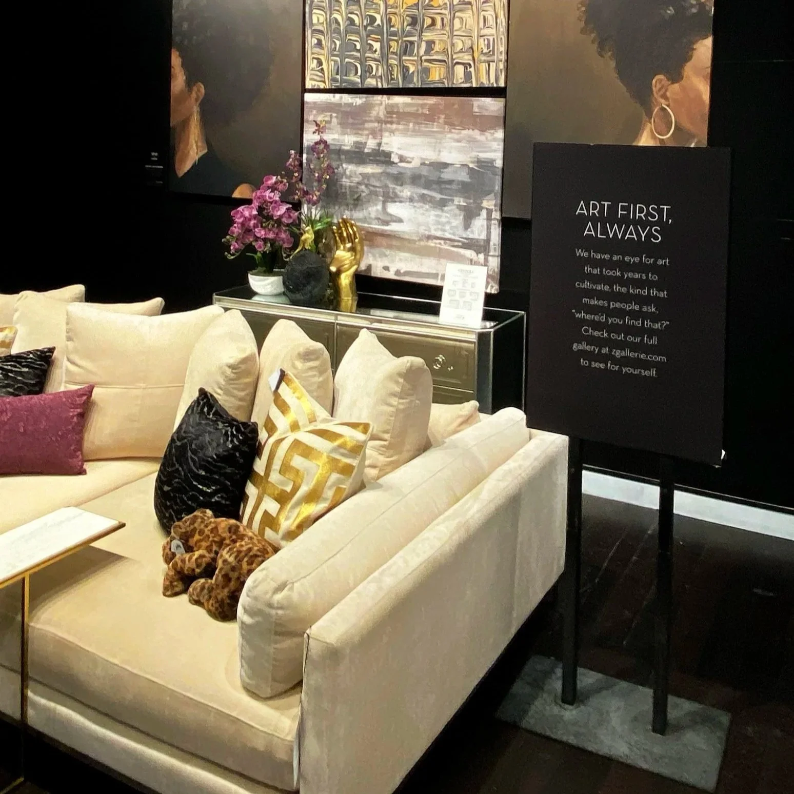 In a visually rich retail environment like Z Gallerie, signage works best when it enhances the story without competing with the product, which means the most effective signs are those that speak in the brand's voice, answer the customer's unspoken question, and disappear into the vignette as a natural extension of the space rather than a separate communication layer.